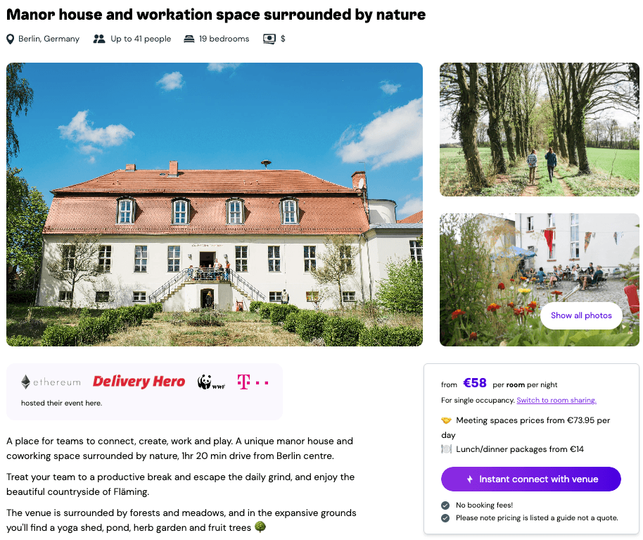 With Basejam, you can easily browse accommodations with stunning views and engaging amenities across Europe. Find the perfect venue by filtering by location, amenities, retreat style, and number of people. Once you’ve sent your inquiry, relax and leave the rest to us.