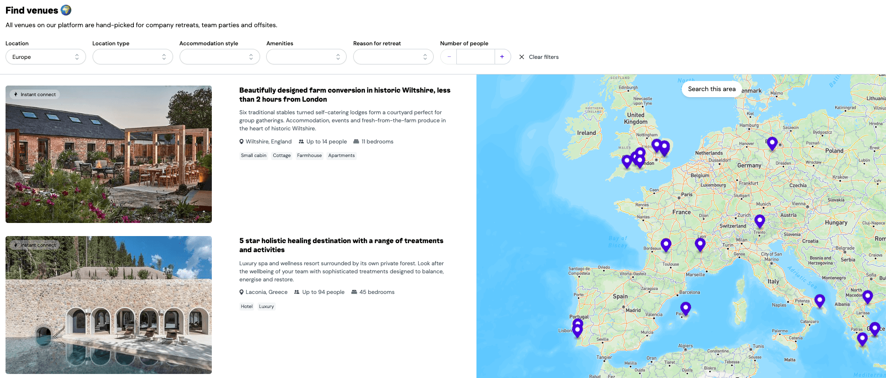 If you’re planning a company retreat, you need a location to reflect your goals. And at Basejam, connecting you with the perfect location happens to be our speciality. Just pick your filters, location, and reason for retreat, and browse unique locations from around the world.